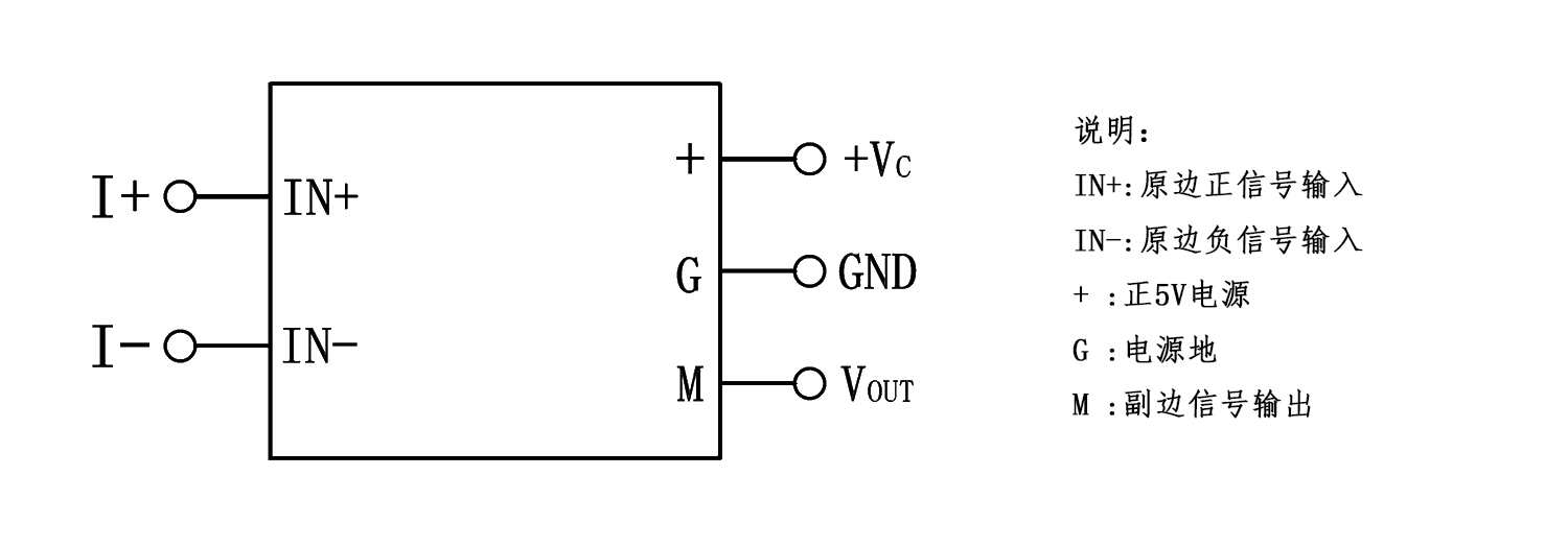 该传感器采用磁平衡霍尔电压检测原理工作。原边电流产生的磁通量与霍尔电压经过放大产生的副边电压,通过副边线圈所产生的磁通量相平衡,副边电压便能精确地反应原边电流。