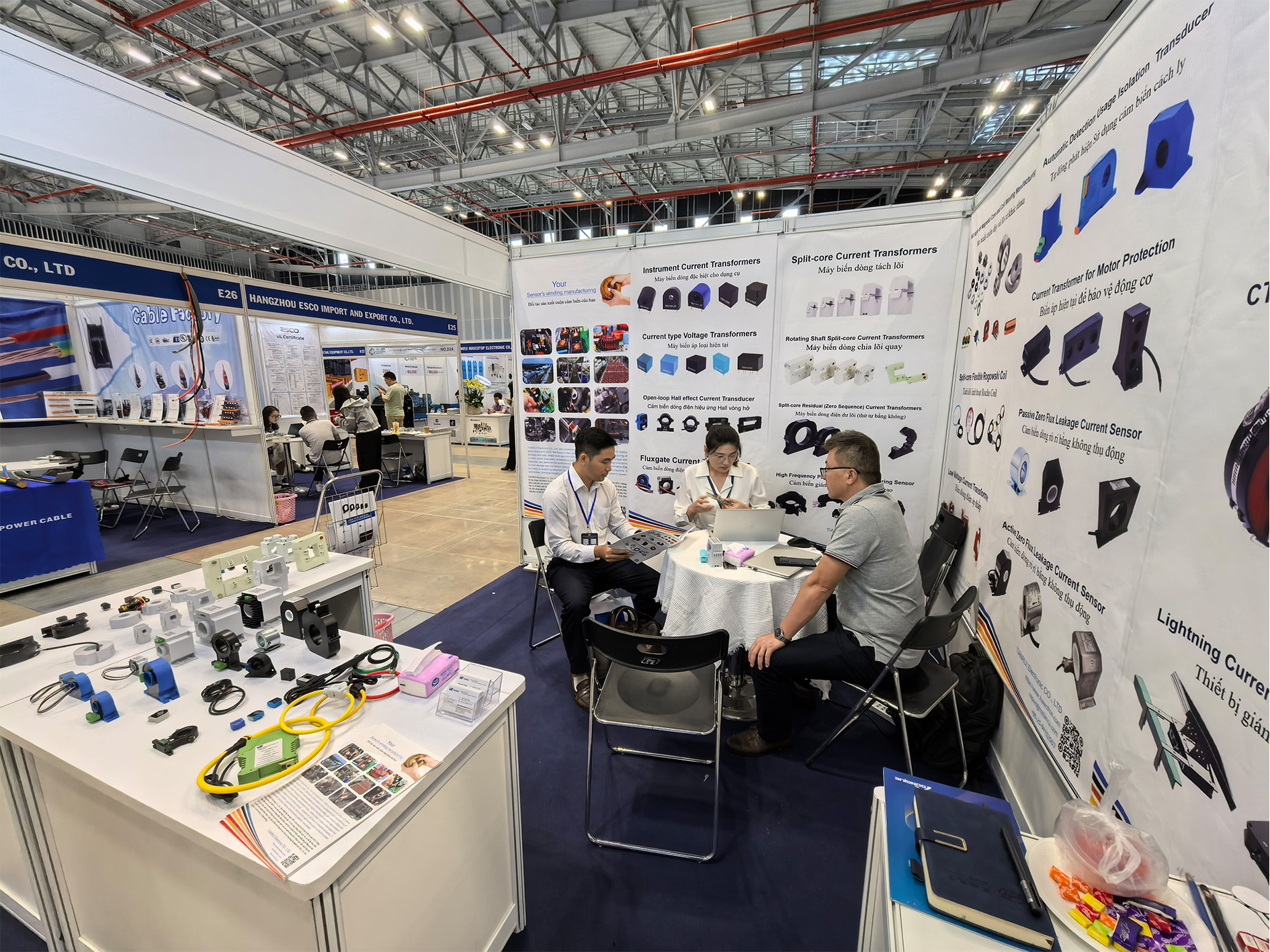 会上,华体会官方网页版-华体会(中国) 自主研发和生产的开合式电流互感器,交直流传感器,罗氏线圈等产品吸引了不少国内外客户前来咨询洽谈,并且和越南当地客户、白俄罗斯等地客户进行了深入的交流,达成了初步的合作意向。